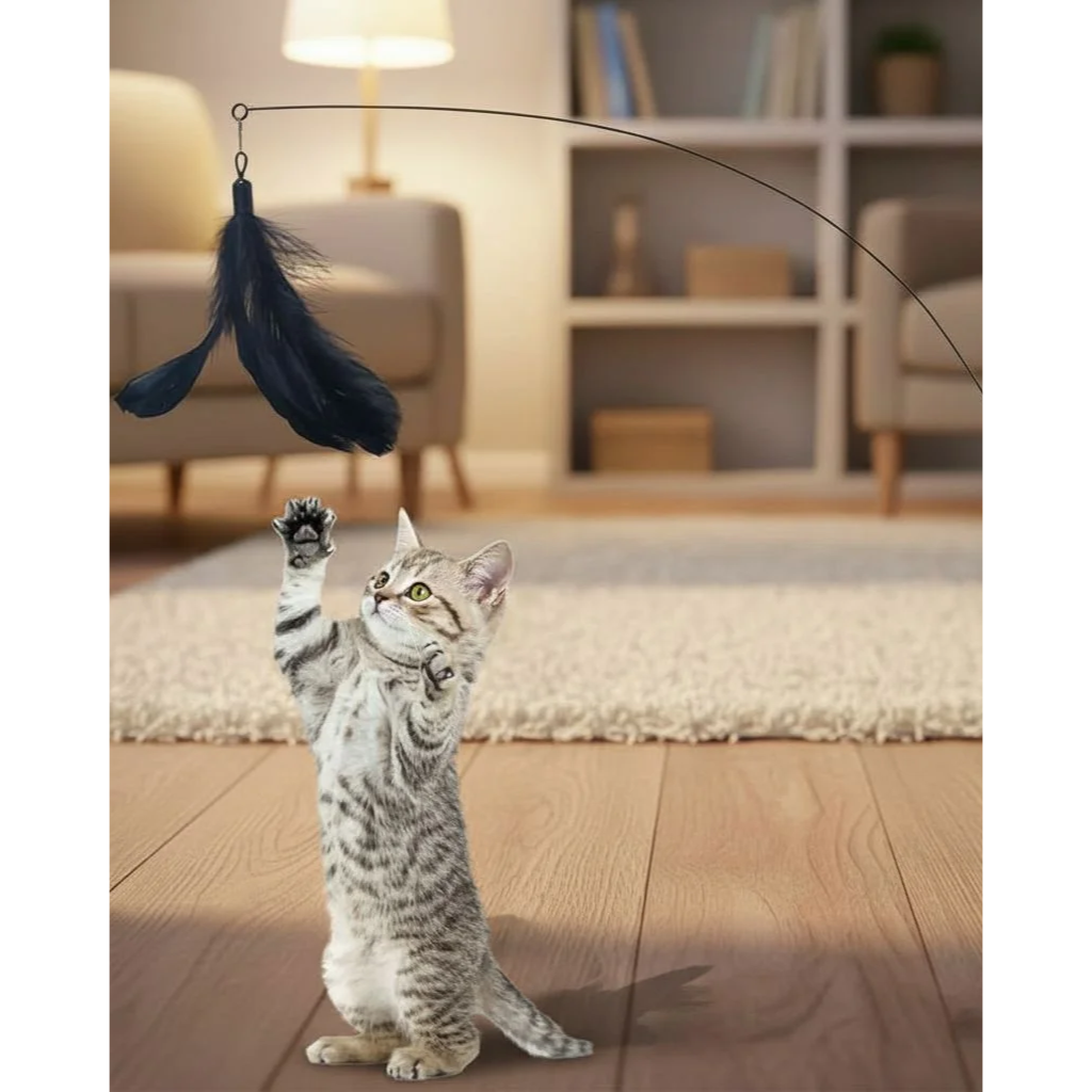 PetRoyale® Interactive Cat Teaser Wand with Suction Cup | Feather Teaser Toy for Endless Indoor Play | High-Engagement Cat Exercise Toy