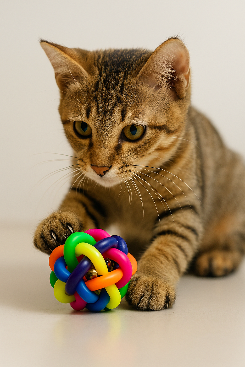 Rainbow Interwoven Cat Ball Toy with Bell – Interactive Play & Mental Stimulation
