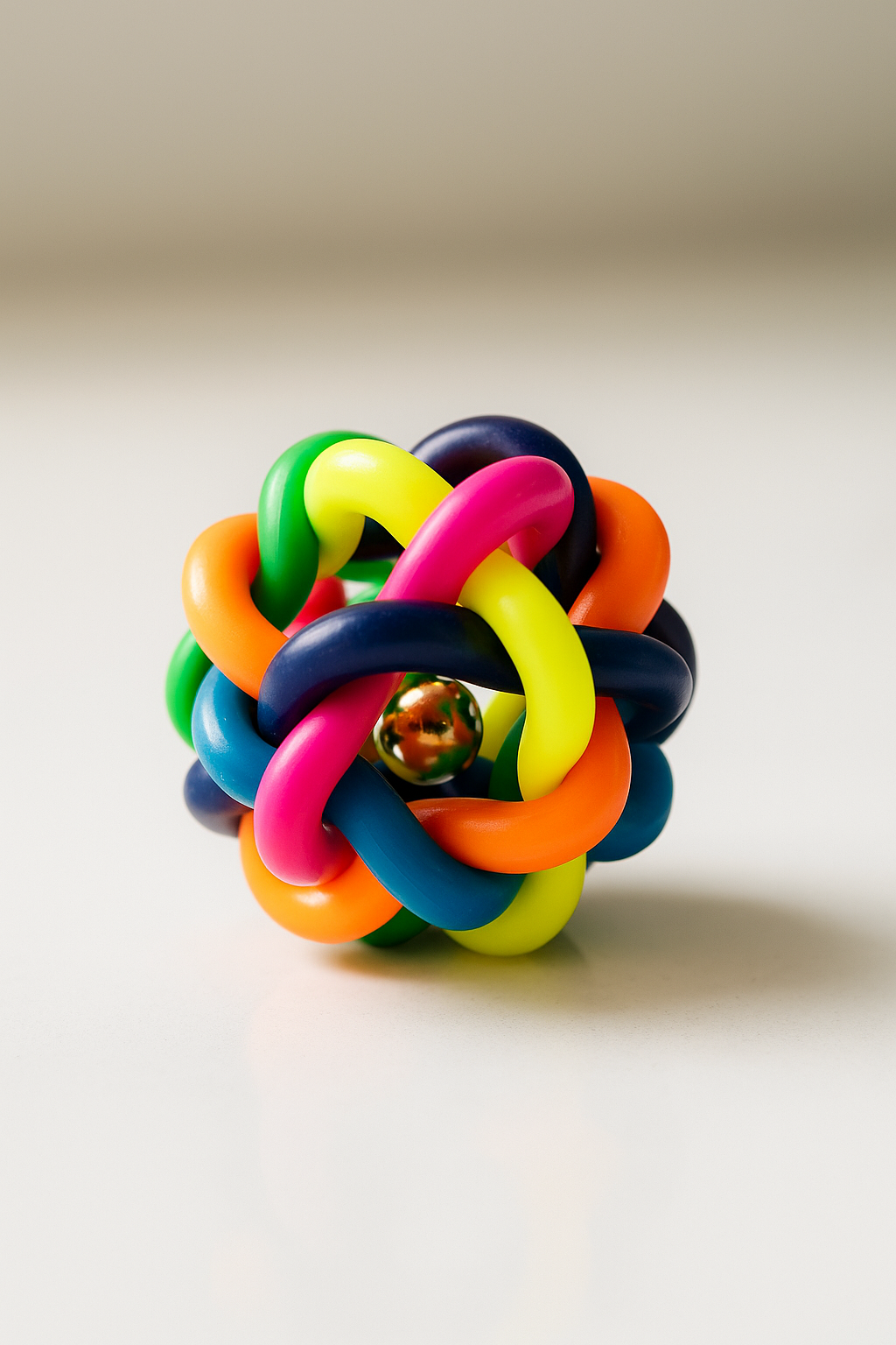 Bring excitement back into your cat’s playtime with our Rainbow Interwoven Cat Ball Toy with Bell—a fun and stimulating toy designed to satisfy your cat’s natural instincts. Its unique woven structure allows for easy pawing and gripping, while the lightweight design makes it roll and bounce unpredictably, creating endless opportunities for hunting-style play.